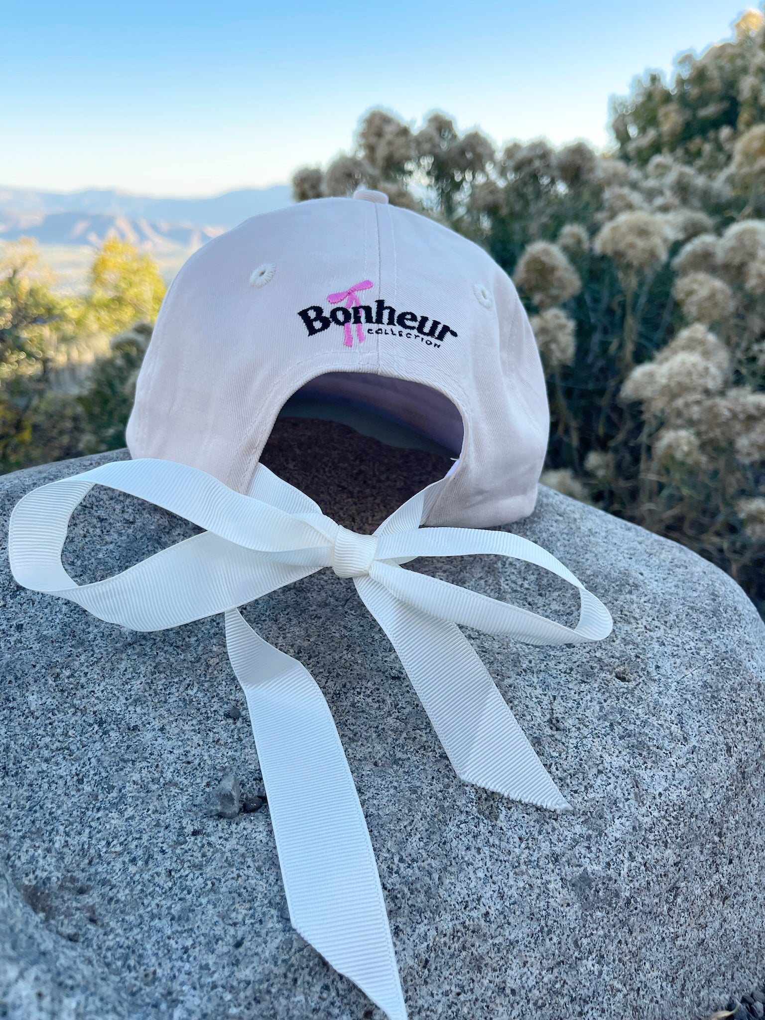 Meet your new staple piece, perfect for any outfit! This unique baseball hat features an adjustable ribbon that can be styled into a bow for a touch of sweetness. Plus, the embroidered floral line adds a fun touch to any outfit. Get ready to bloom in style!
